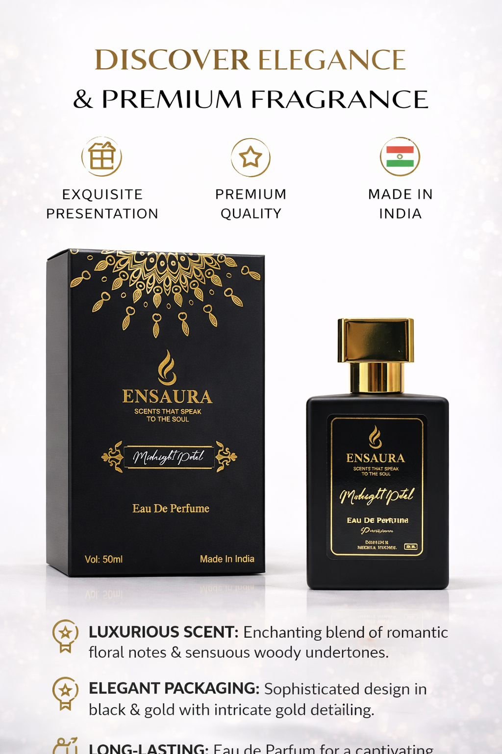 Ensaura Midnight Petal Cigar Perfume for Men is a bold and sophisticated fragrance inspired by the rich aroma of premium cigars and midnight elegance. Blending smoky woods, warm amber and subtle spices, this long lasting perfume delivers a deep masculine scent perfect for evenings and special occasions.