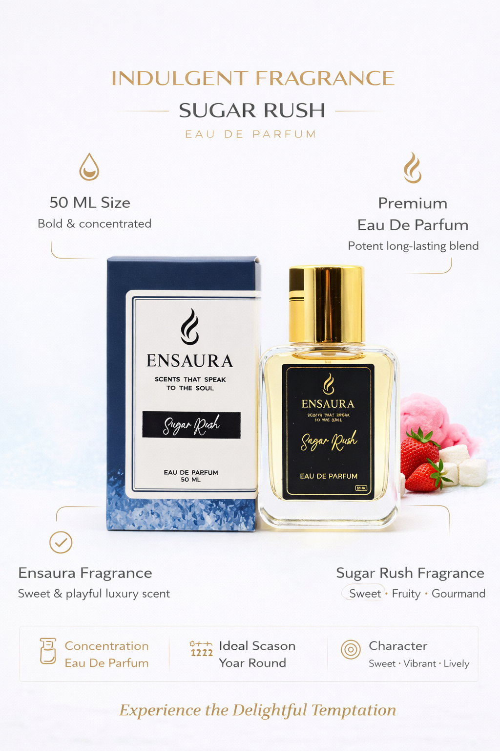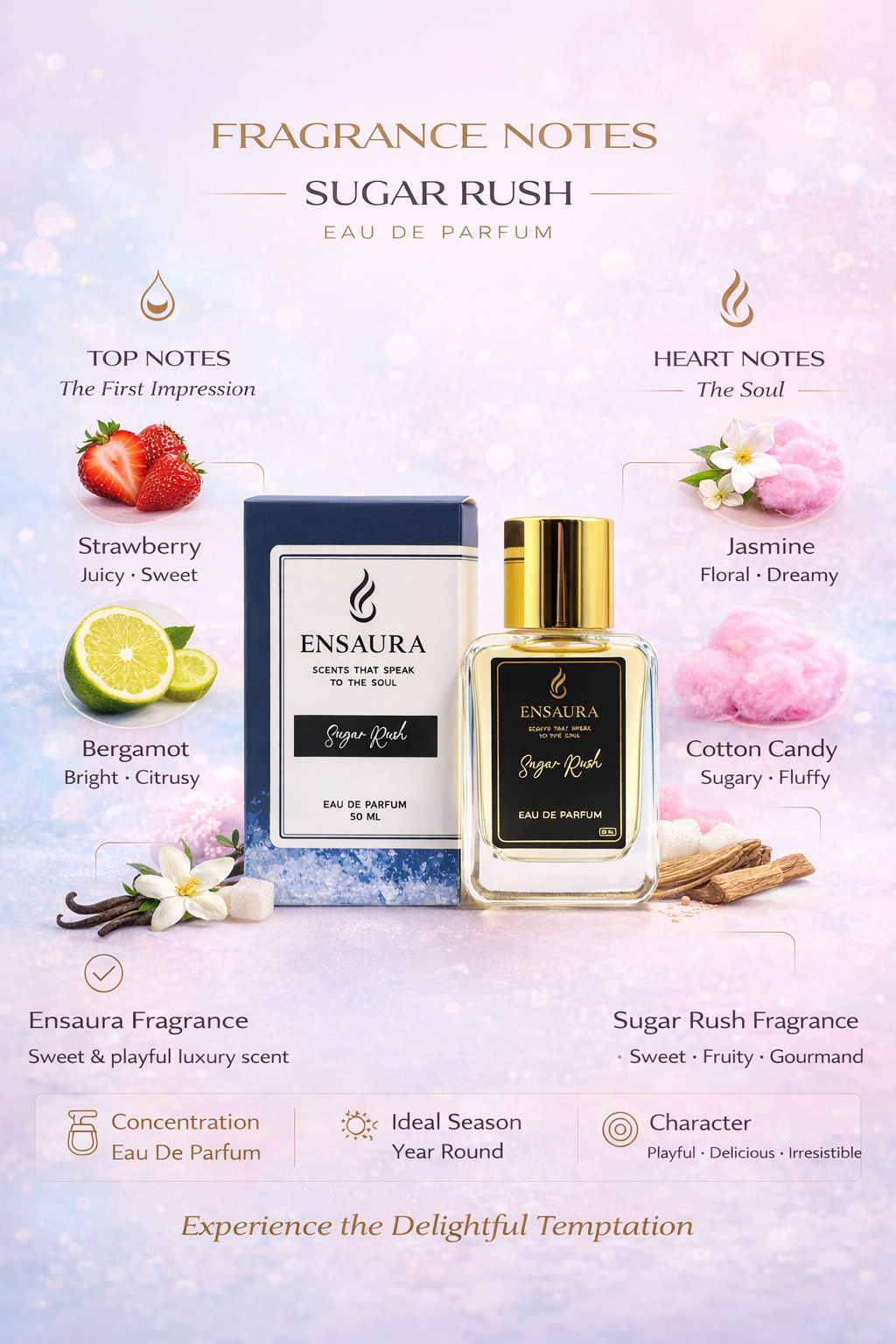 Sugar Rush Eau De Parfum is designed for those who love sweet, warm and comforting fragrances. Inspired by indulgent desserts and playful energy, this perfume blends caramel sweetness with creamy vanilla and fruity freshness.
